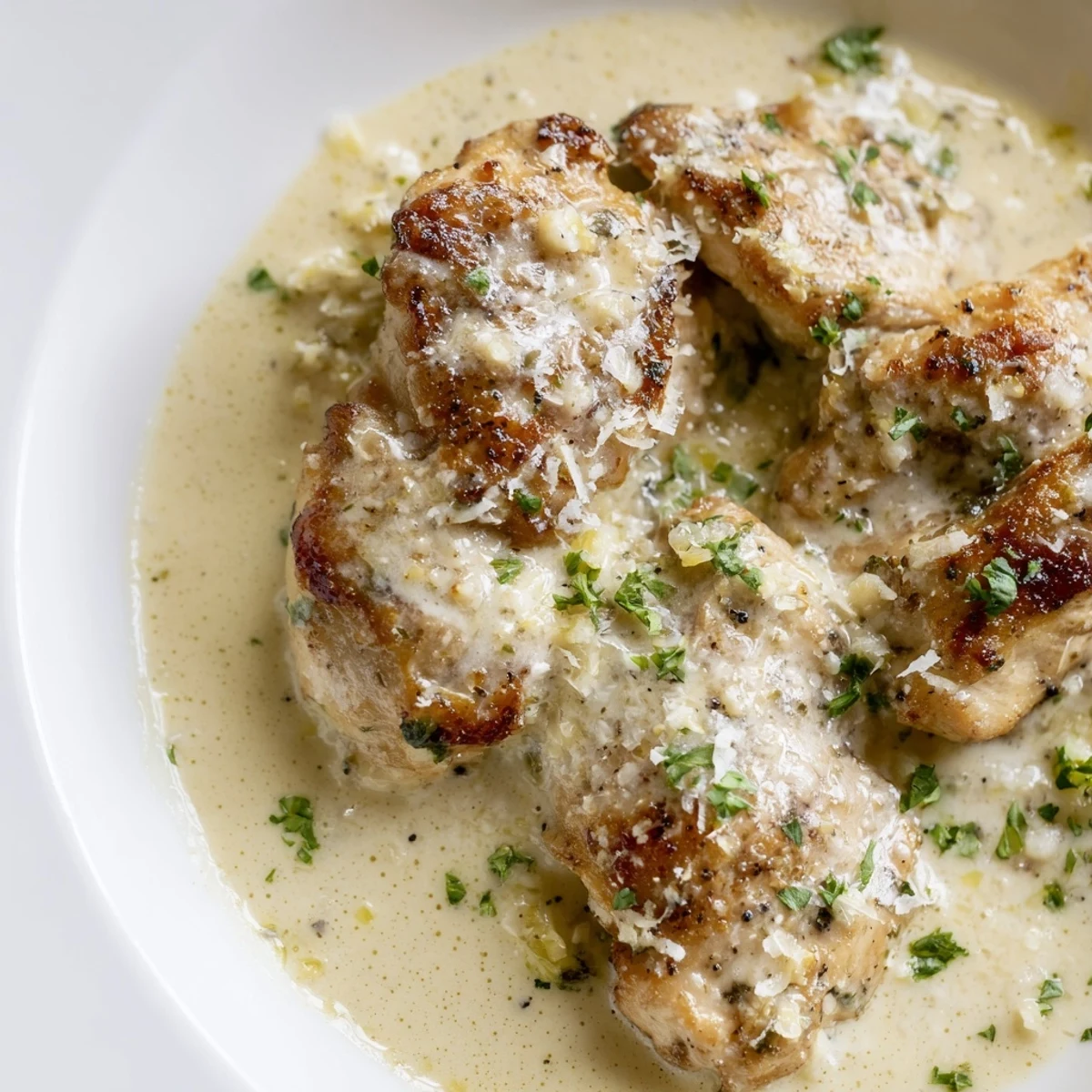 This luscious European-style dish features tender chicken breasts seared to golden perfection, then simmered in a velvety sauce made with fresh garlic, aromatic onion, heavy cream, and aged Parmesan. The entire preparation comes together in just 35 minutes, making it ideal for both busy weeknights and special occasions. The sauce develops beautiful depth from the browned pan drippings, while fresh Italian herbs add brightness. Serve alongside mashed potatoes, pasta, or steamed vegetables for a complete meal that pairs beautifully with crisp white wine like Chardonnay or Sauvignon Blanc.