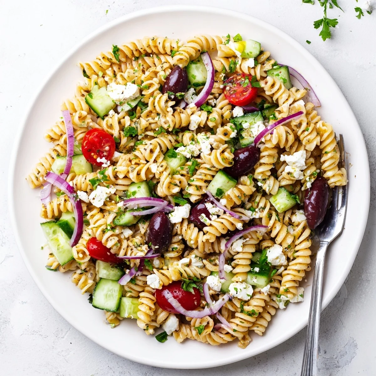 Last summer, my neighbor Maria brought this pasta salad to our block party and I literally hovered over the bowl the entire afternoon. Something about how the salty feta plays with that bright red wine vinegar just wakes up your whole palate. I begged her for the recipe right there, napkin and pen in hand, like I was uncovering a family secret instead of a potluck dish.